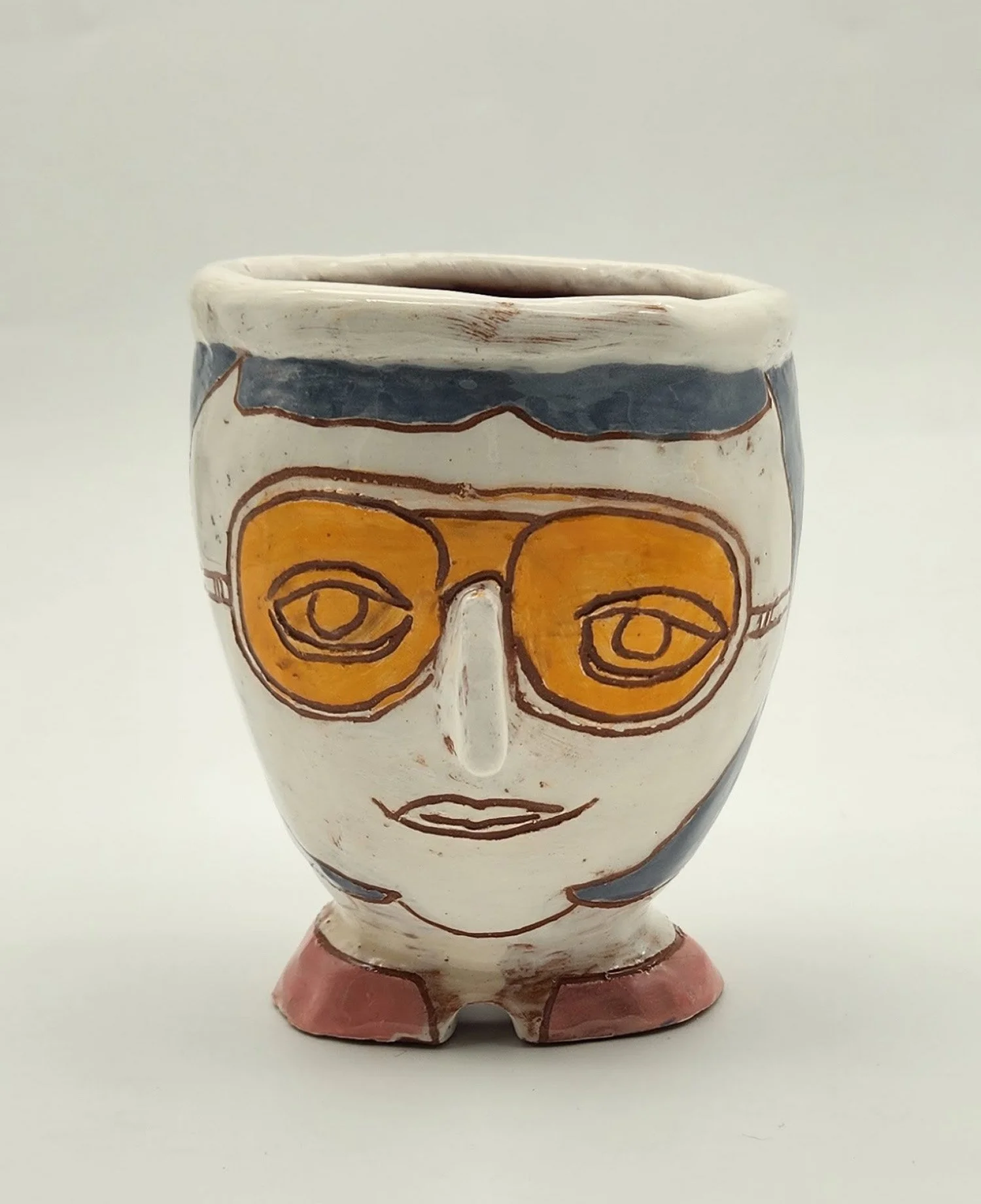 Turniphead. 40"x 16"x 12" Earthenware, slip, underglaze, glaze.